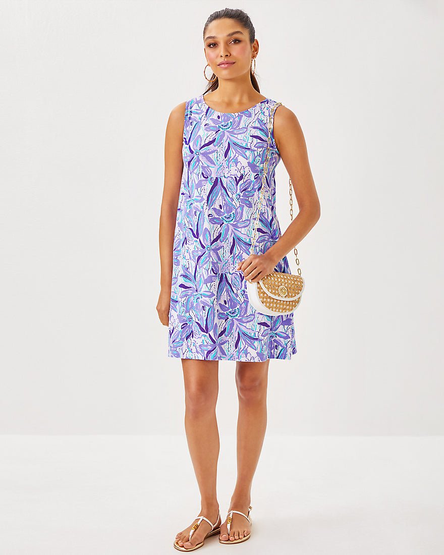 - Swing fit dress with a twist-back neckline and cutout detail.