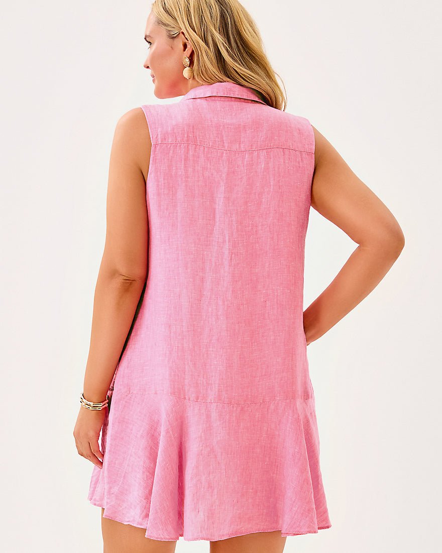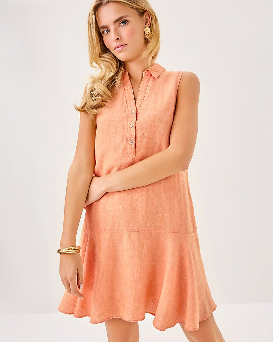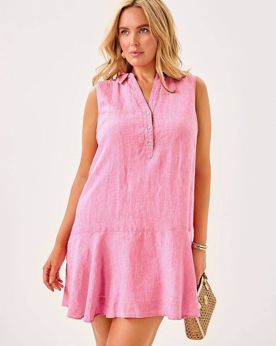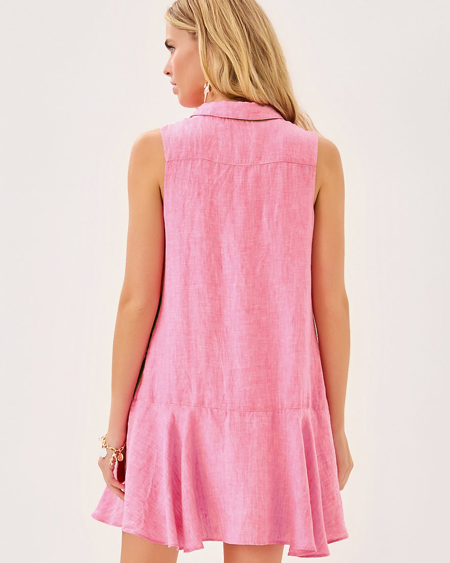 - Easy fit, popover shirtdress with a half placket and tall hem flounce.