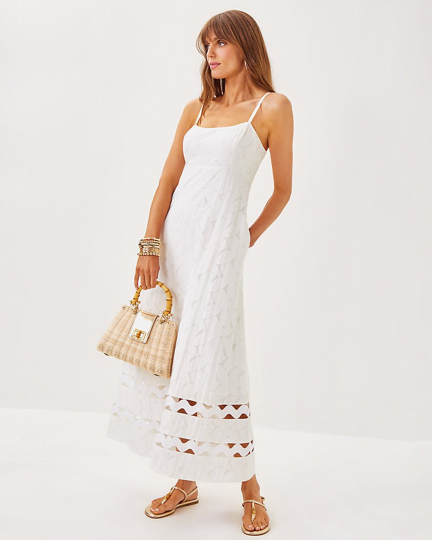 Enhance your wardrobe with the charming details of our crisp Haliey Midi Dress.