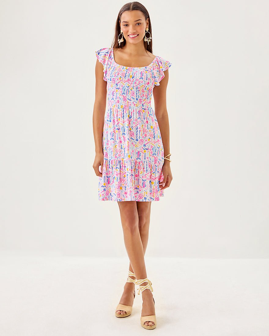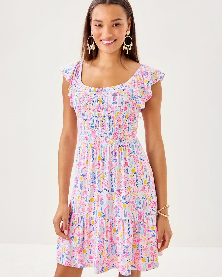 Have summertime fun in our Jilly Smocked Dress, featuring a flattering fit-and-flare silhouette, smocked bodice, and hem ruffle for a playful touch.