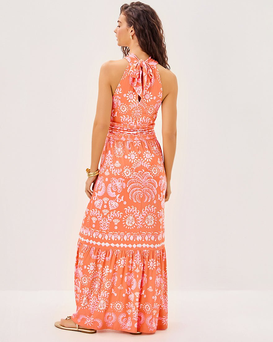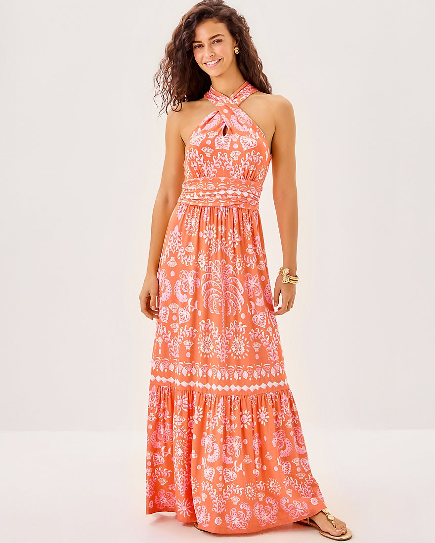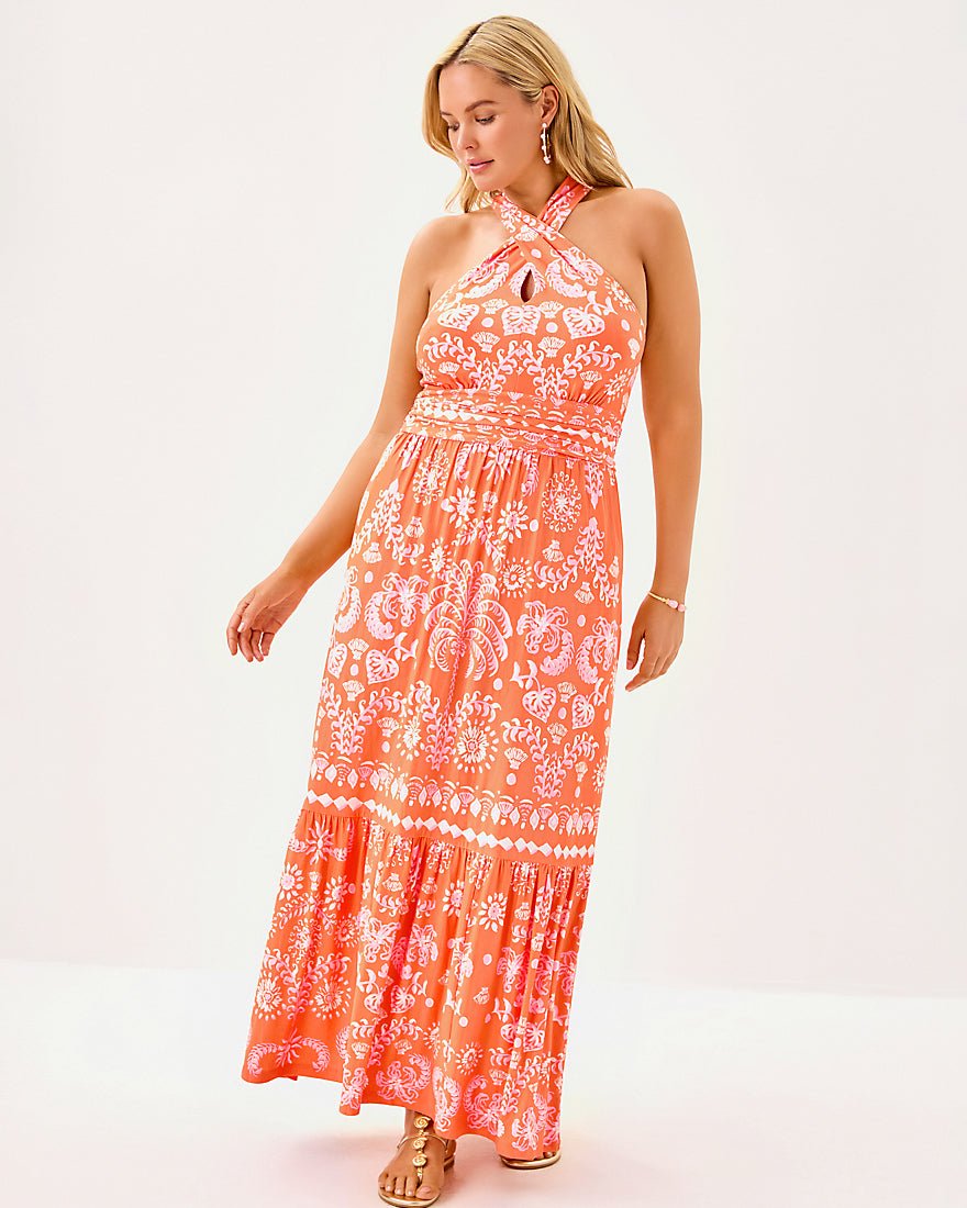 Soft and easy in printed jersey, the Montecito Halter Maxi Dress is made for warm summer days thanks to a tie-back neckline and ruffled hem that catches the breeze. It's the perfect length to wear with flat sandals, too.