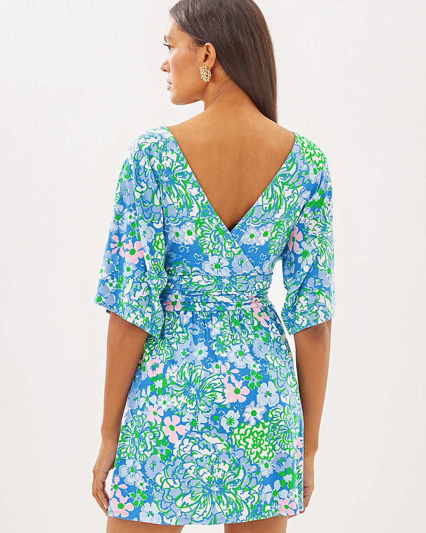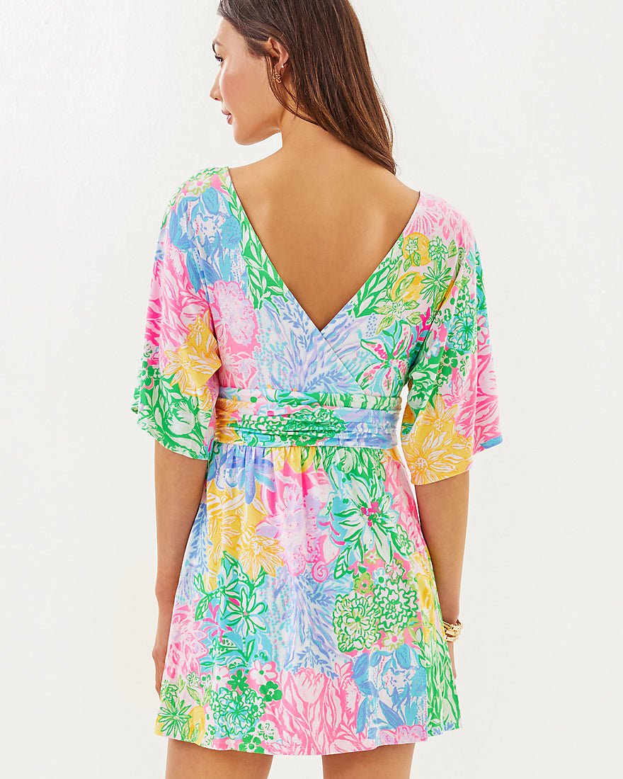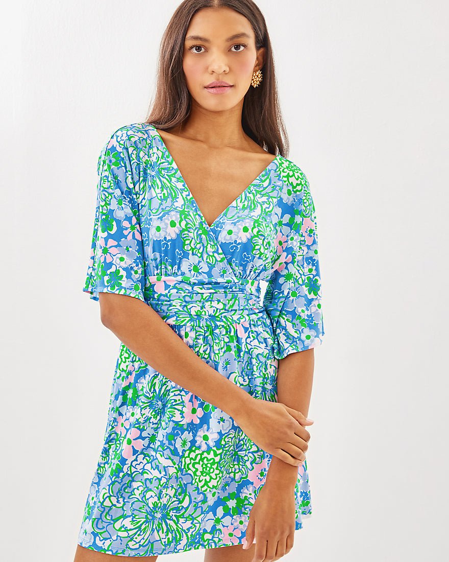 Our Parigi Skort Romper is designed for fun in the sun. Made from soft jersey, this skirted style features a surplice neckline, elbow-length kimono sleeves, and a ruched waistband.