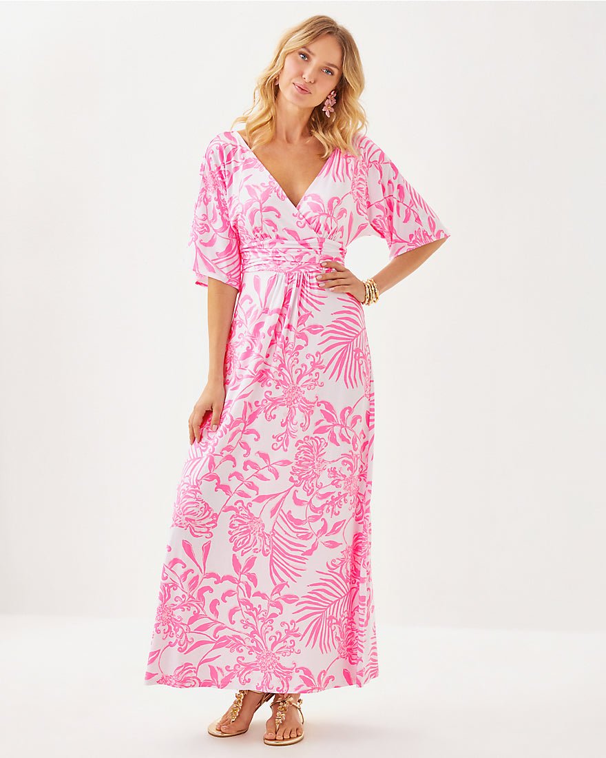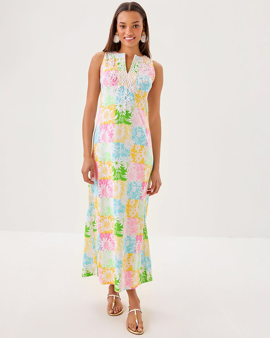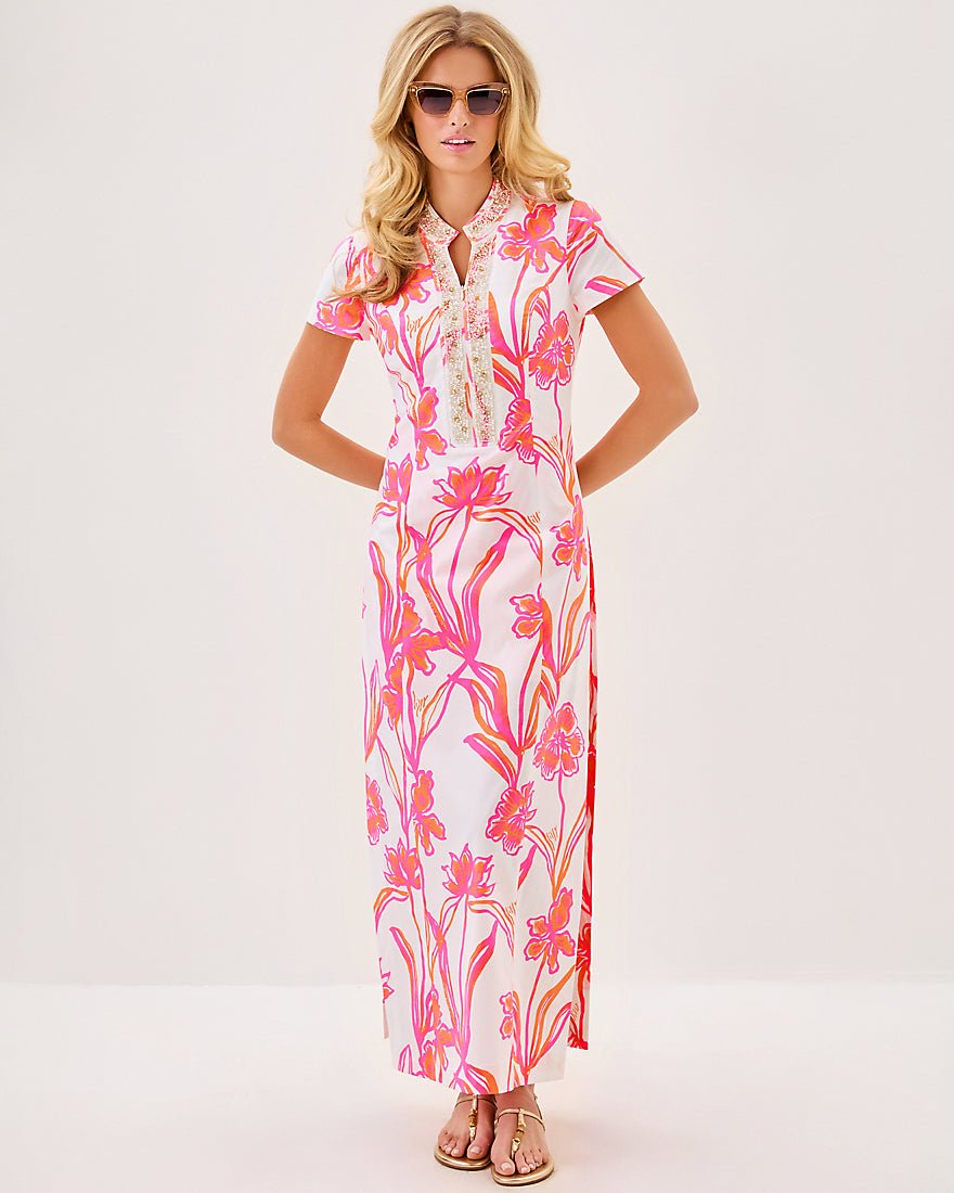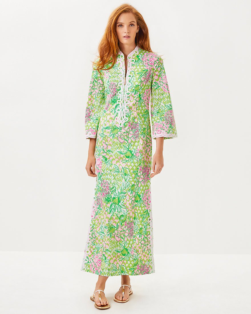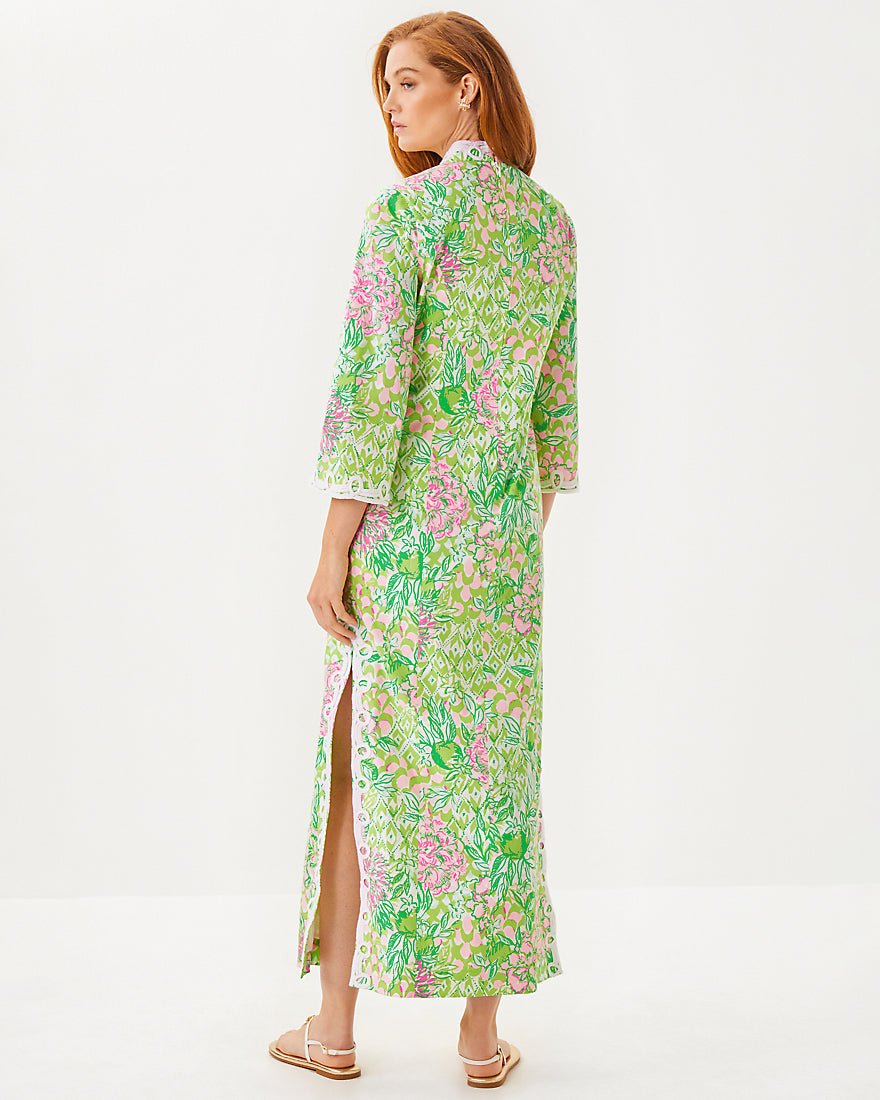 Shealyn Three Quarter Sleeve Stretch Cotton Maxi Caftan Dress