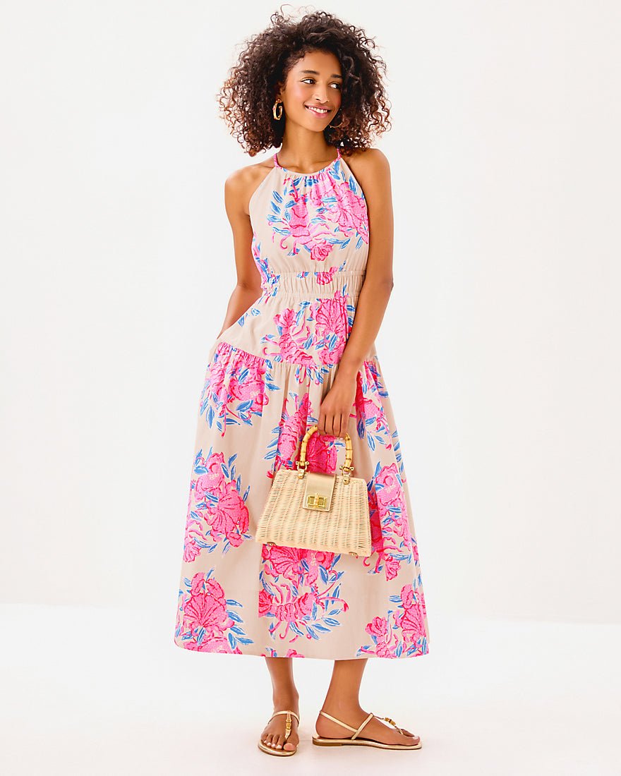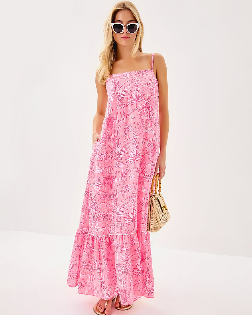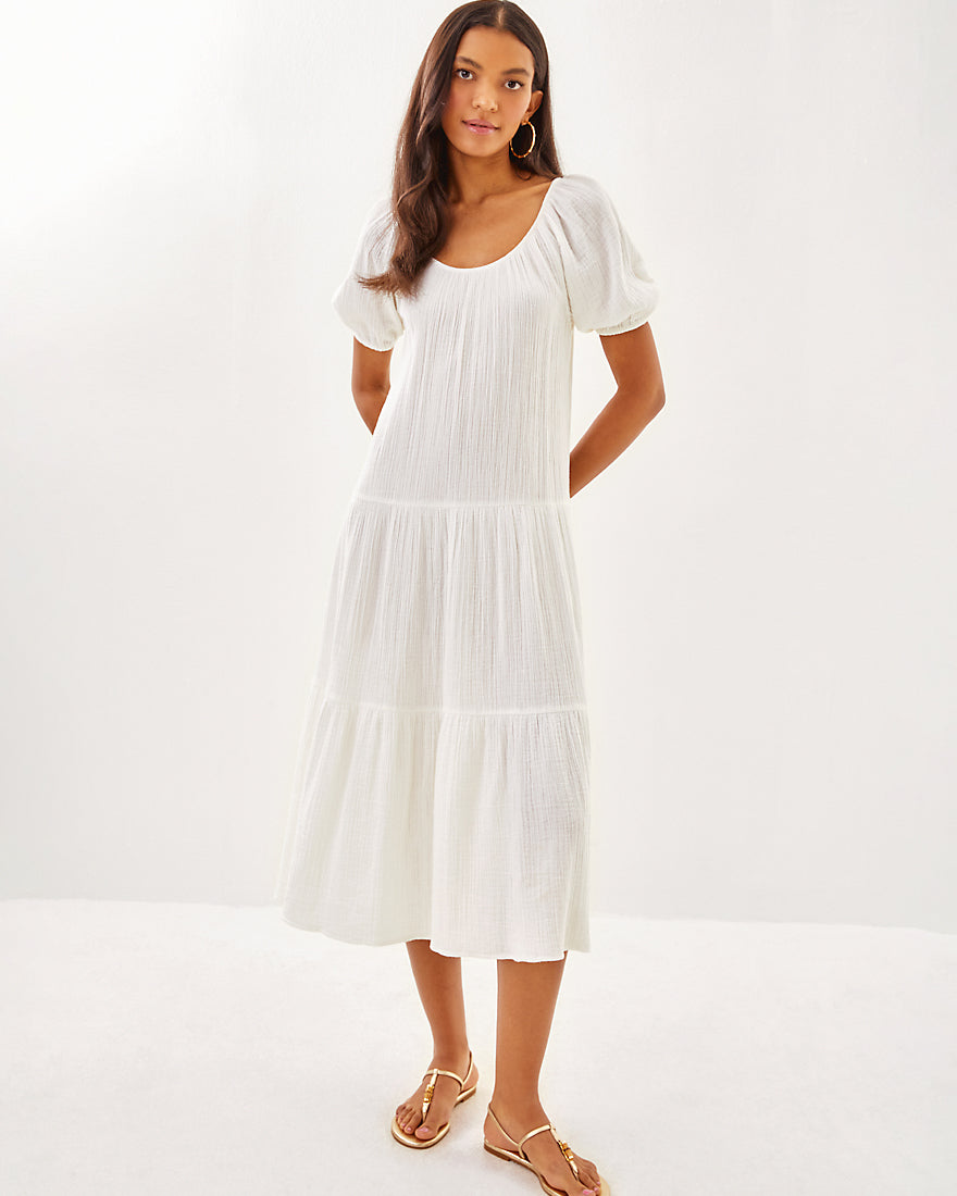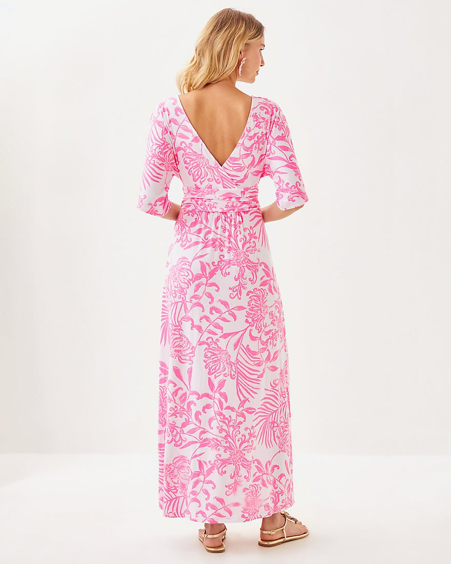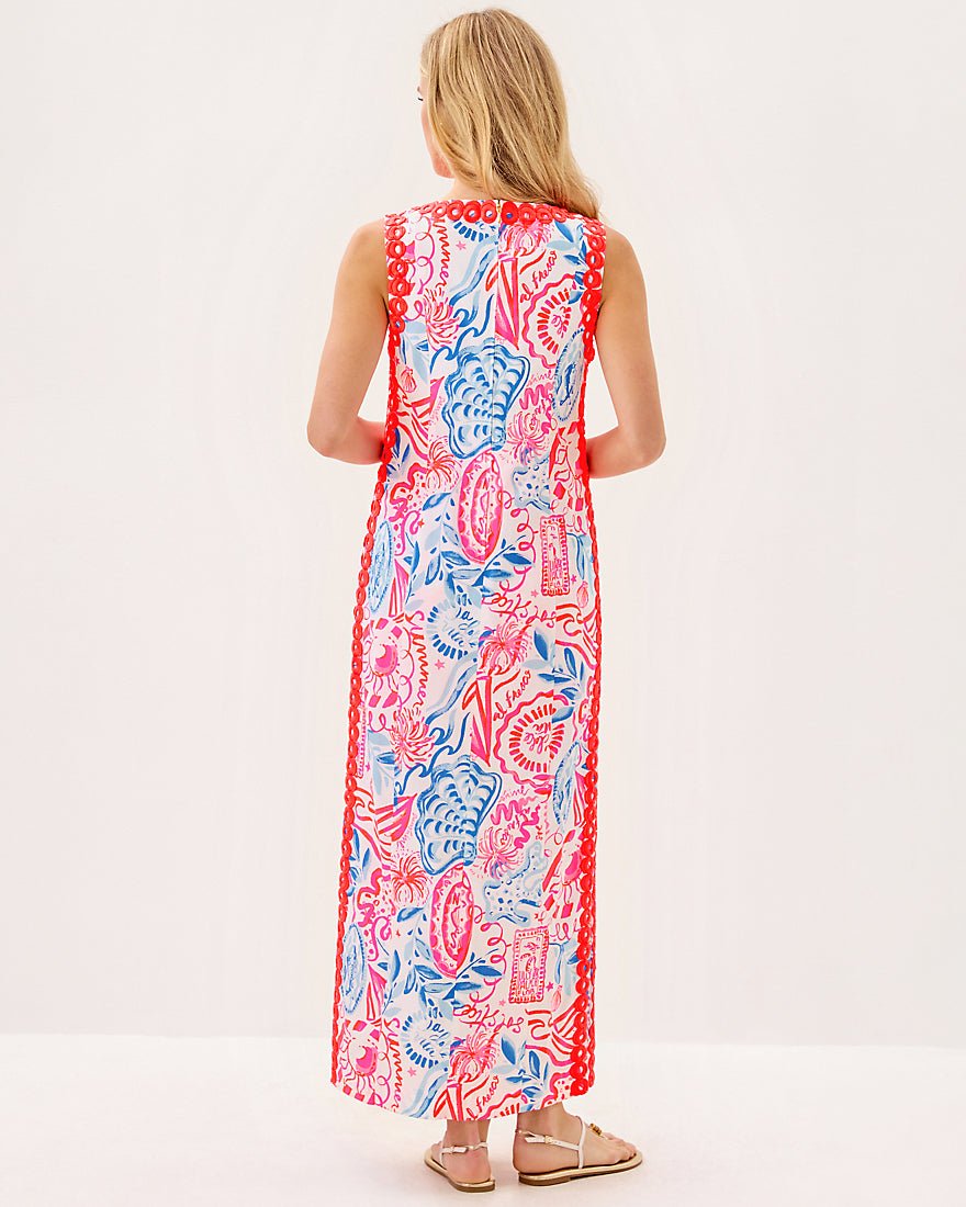 Shealyn Three Quarter Sleeve Stretch Cotton Maxi Caftan Dress