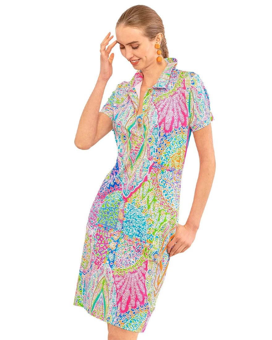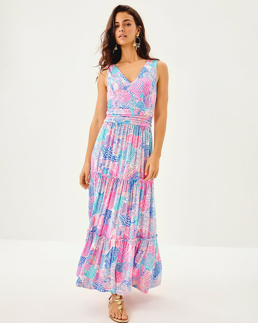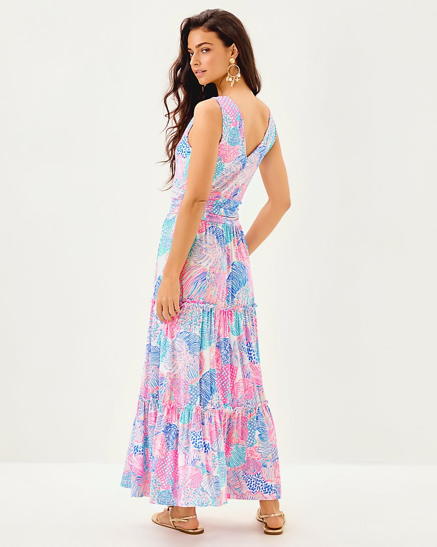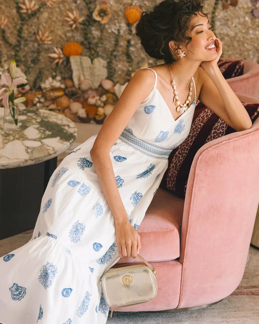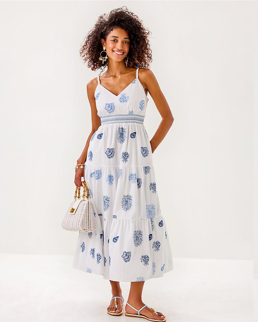 Shealyn Three Quarter Sleeve Stretch Cotton Maxi Caftan Dress
