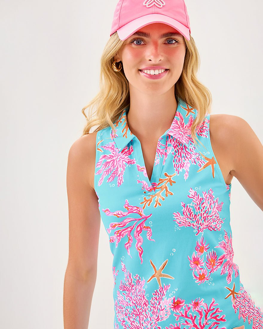 - UPF 50+ Luxletic® sleeveless polo. Moisture wicking.