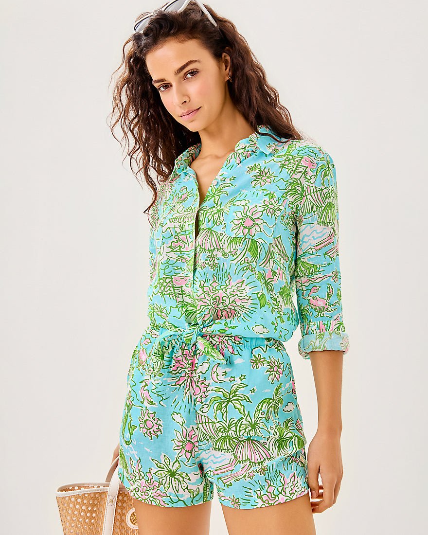 Jacaranda Blue Beach Day Embroidered Seacret Stripe