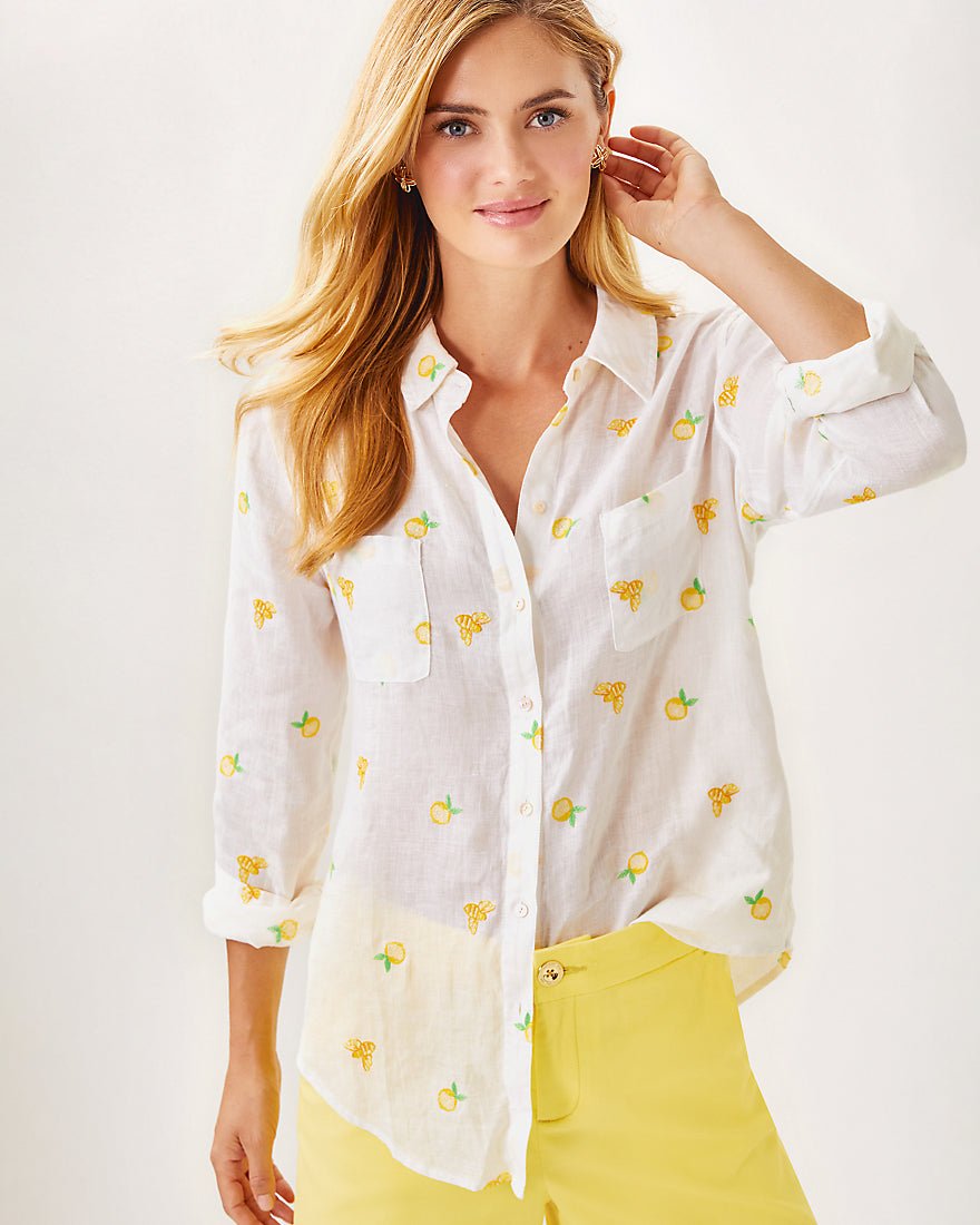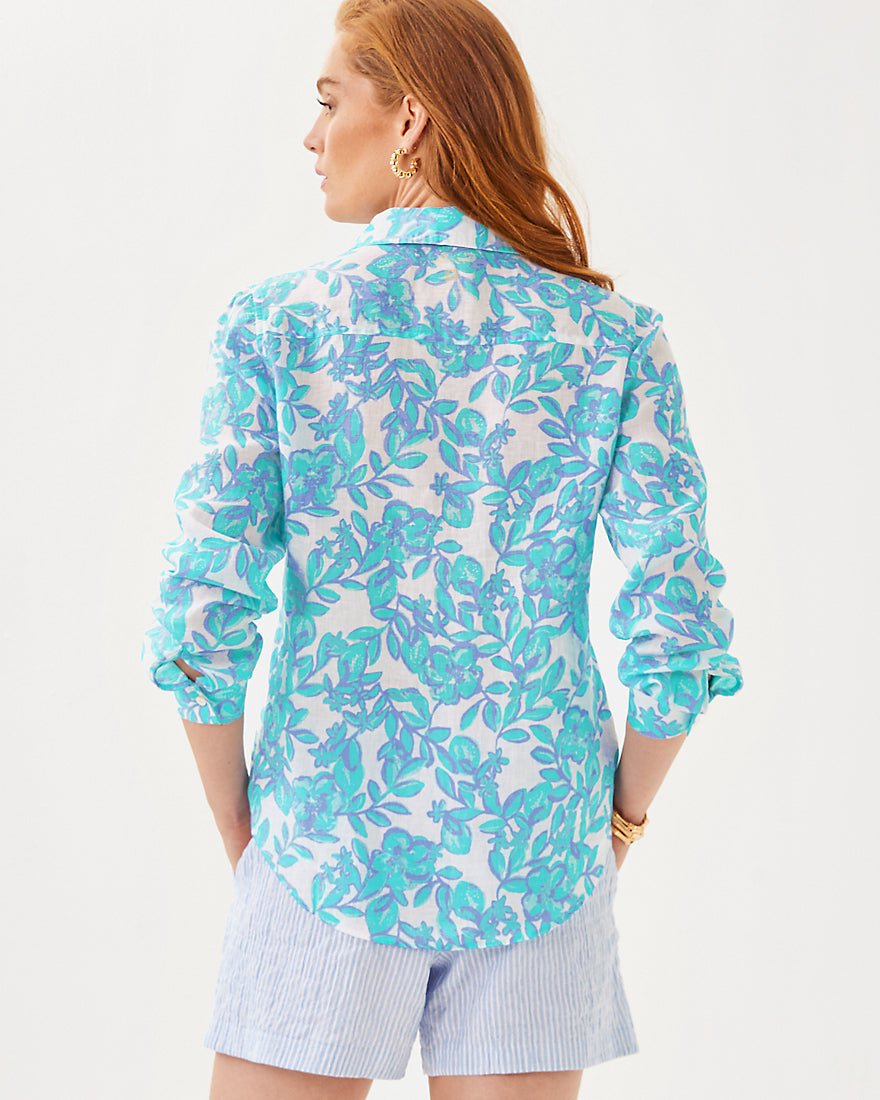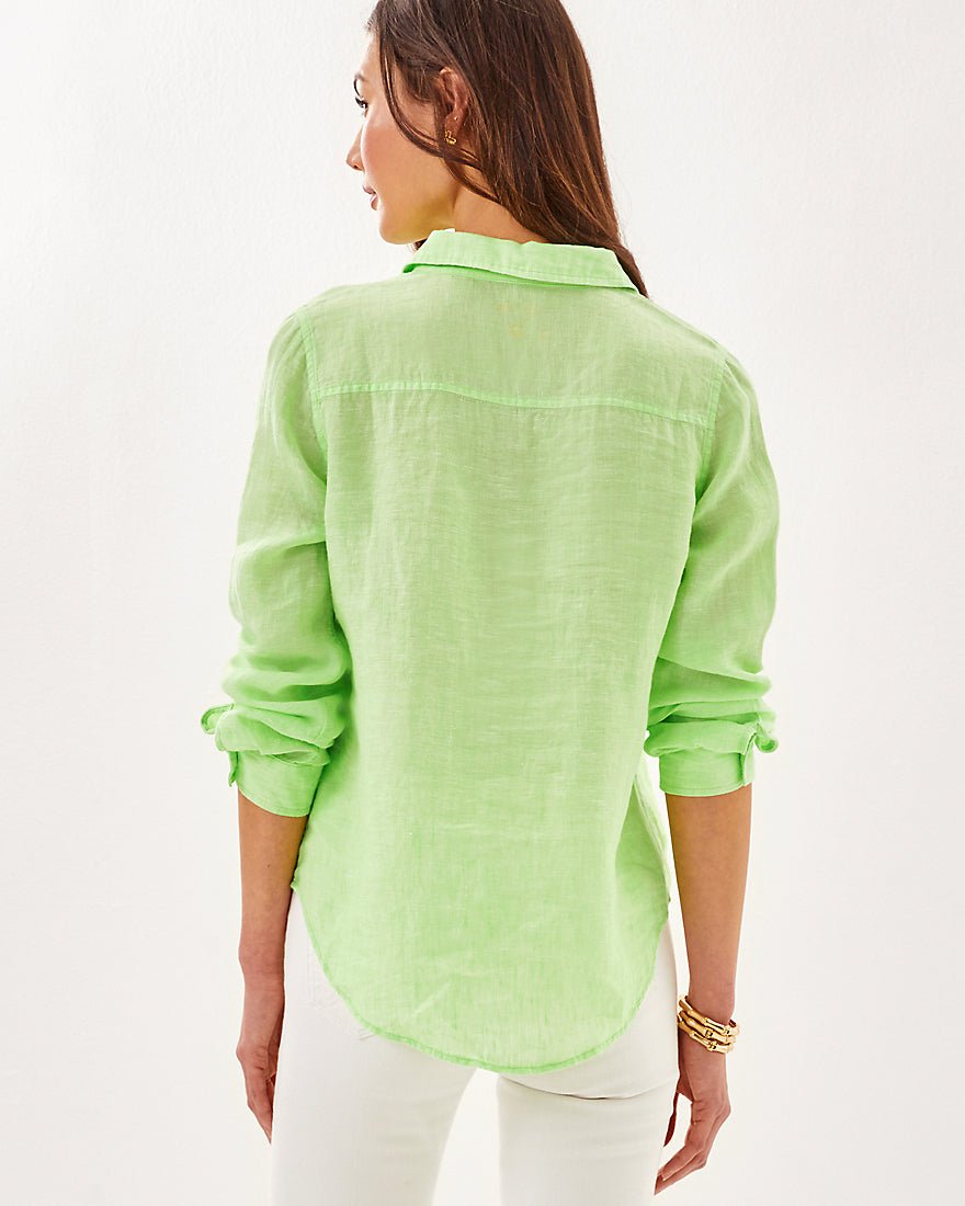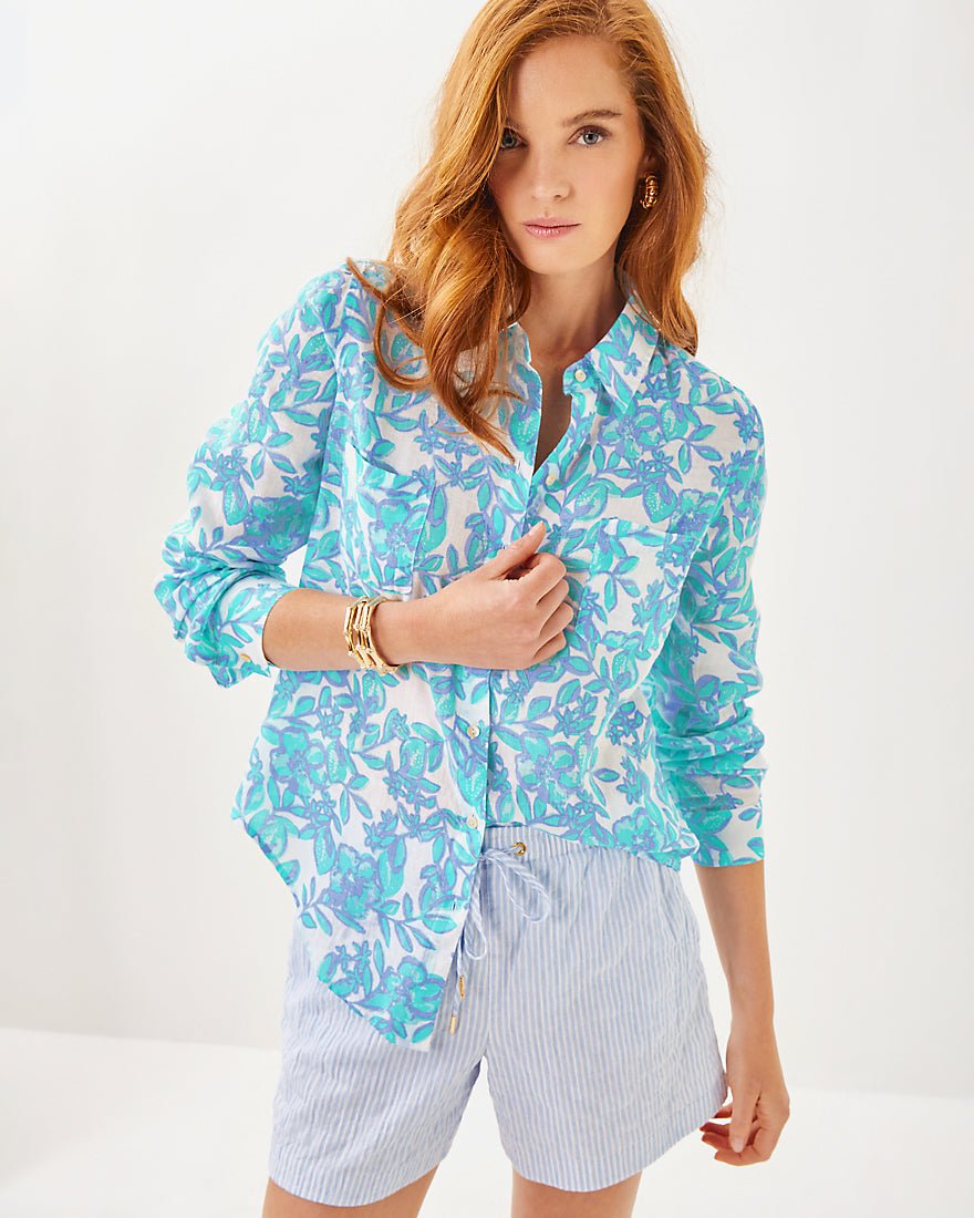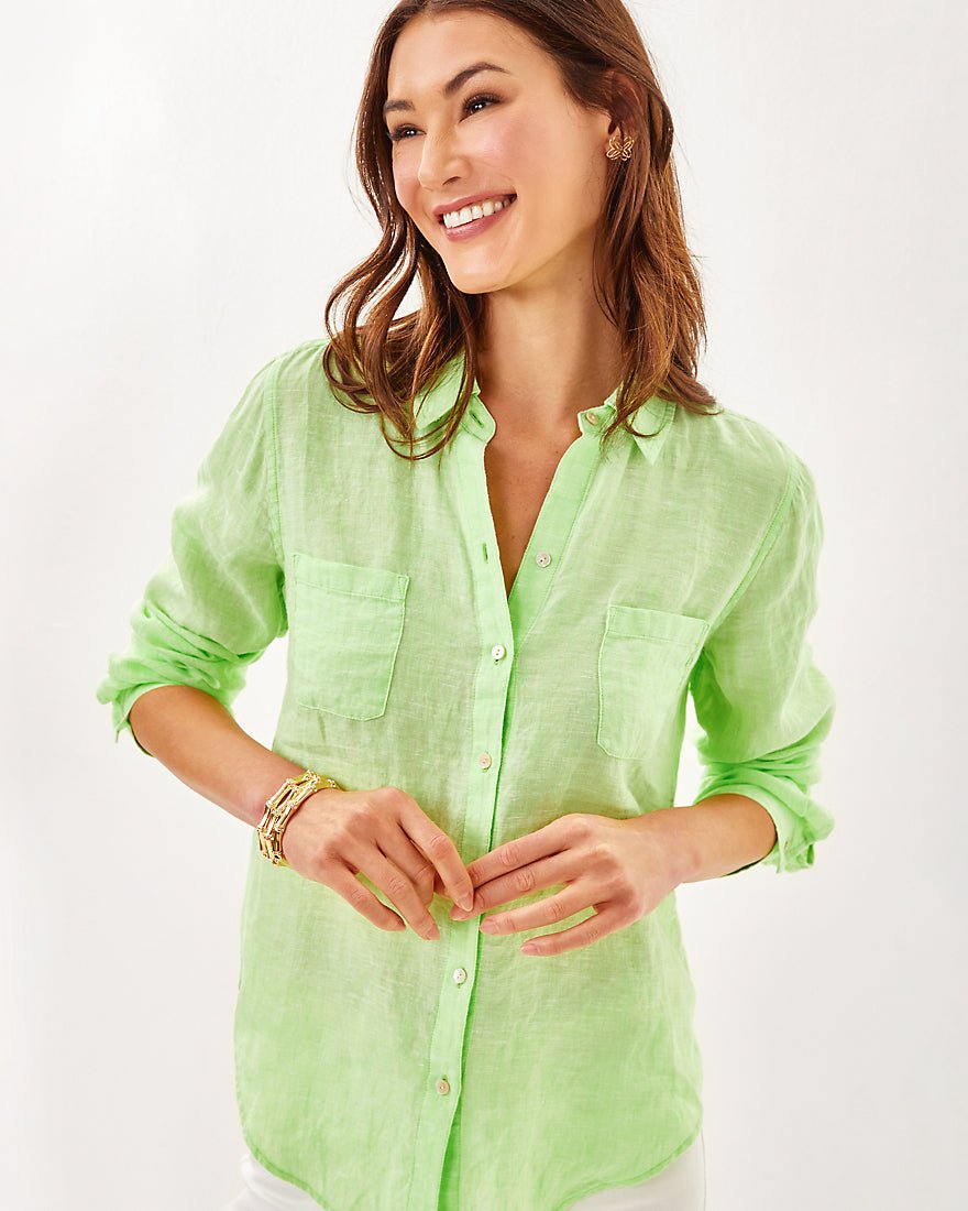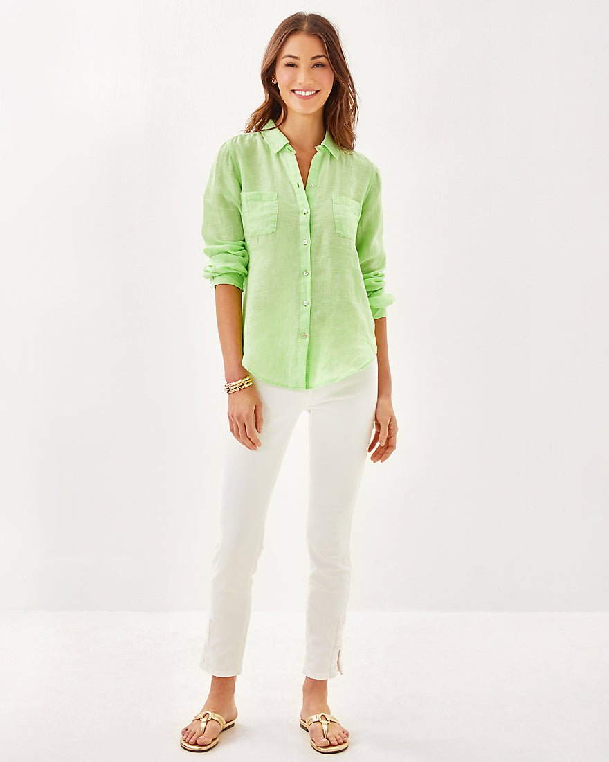 Breezy and exceptionally versatile, our Sea View Linen Button Down Top is an essential addition to your wardrobe. Made from natural European-grown fibers, this style will get softer and more luxurious with every wash and wear.