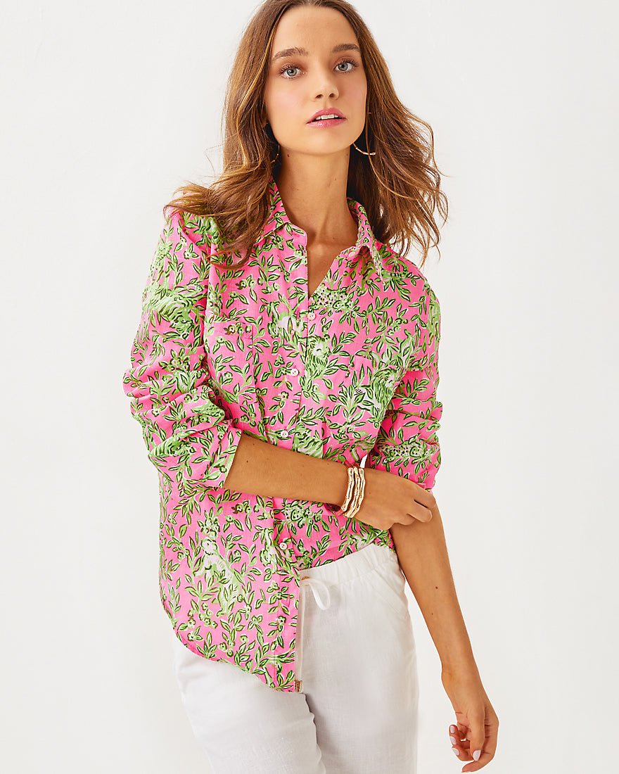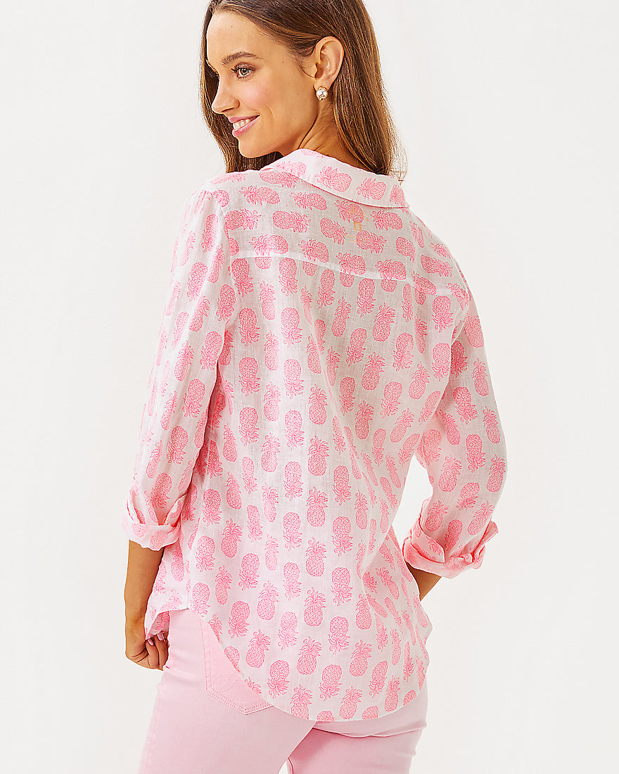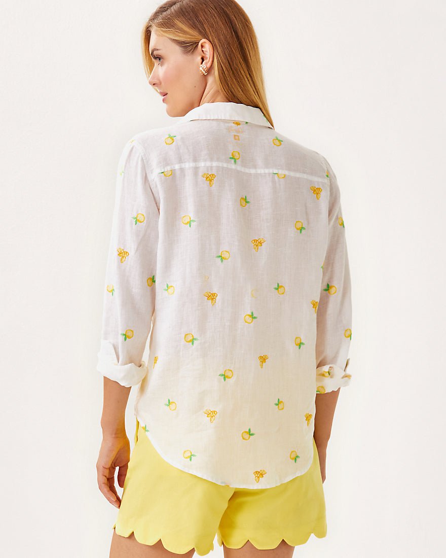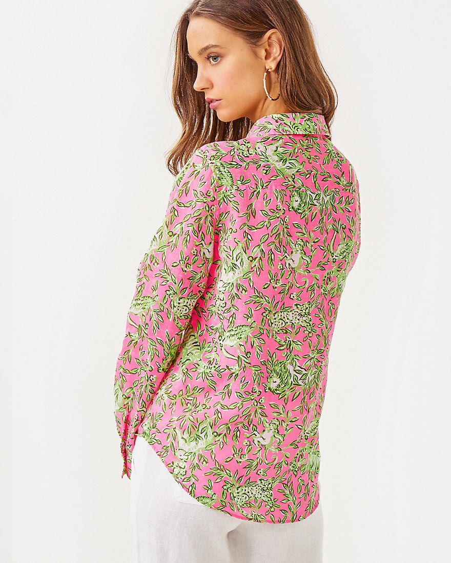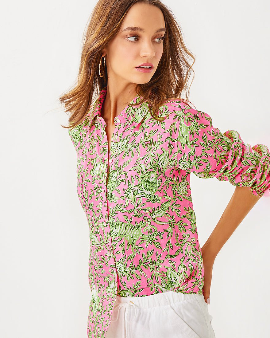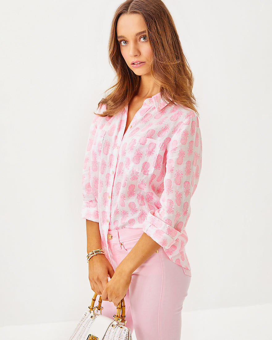Breezy and exceptionally versatile, our Sea View Linen Button Down Top is an essential addition to your wardrobe. Made from natural European-grown fibers, this style will get softer and more luxurious with every wash and wear.