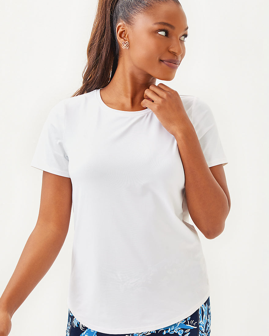 The perfect match for printed skorts and leggings, the UPF 50+ Luxletic Westley Active Tee is a short sleeve top that offers practical sun protection and moisture wicking.